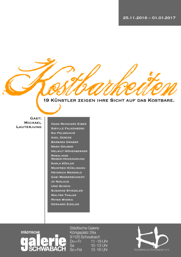 Künstlerbund Schwabach: „Finale 2016 – Kostbarkeiten“, Gast Michael Lauterjung /Berlin |