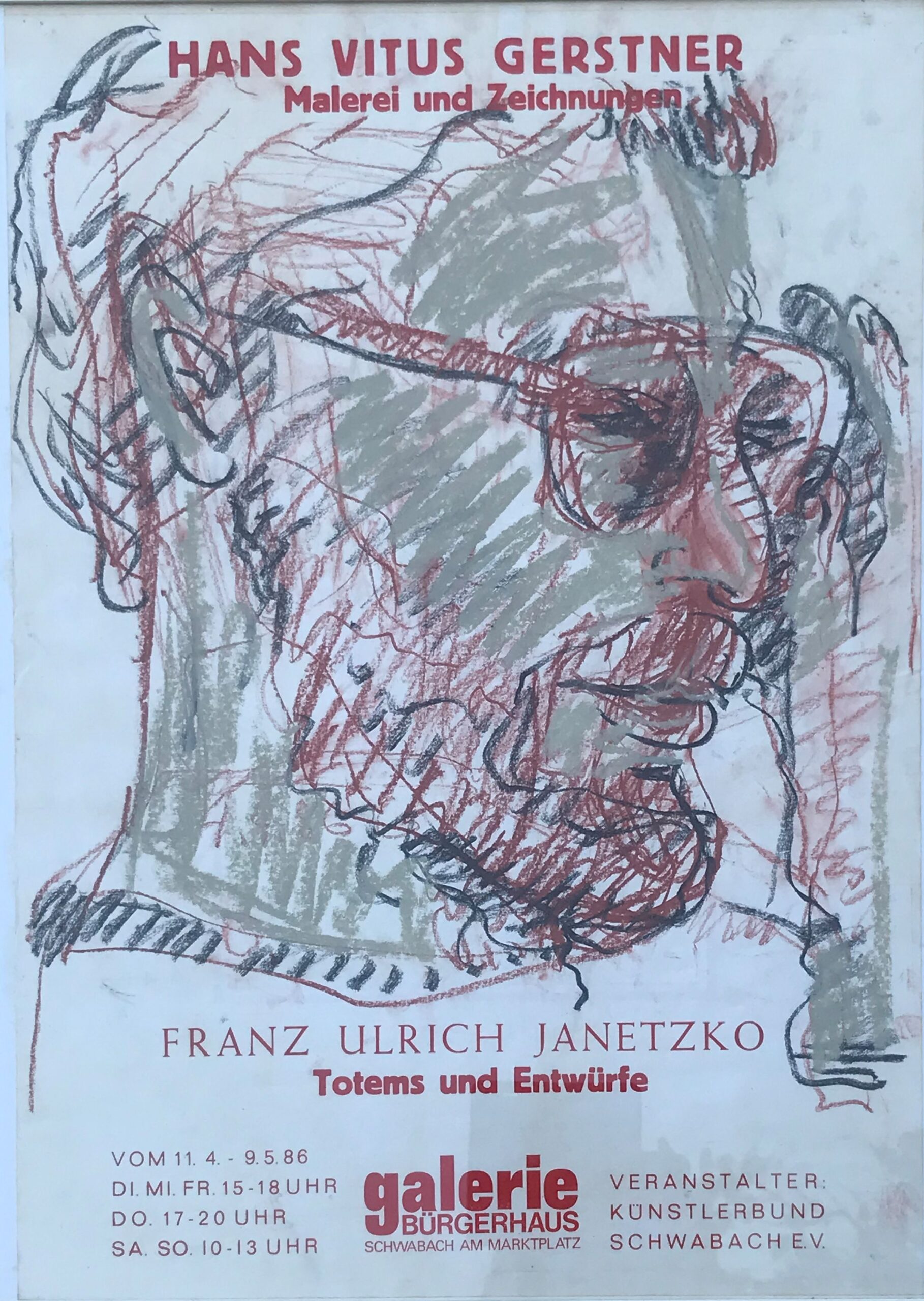 2.4.-8.5.86 Hans-Vitus Gerstner, Schwabach: Zeichnungen, Malerei / Franz Ulrich Janetzko, Fürth: Totems
